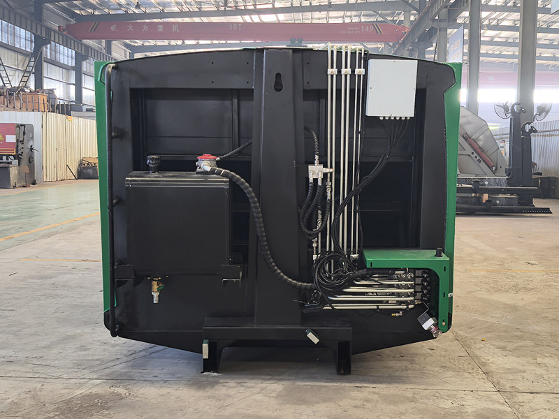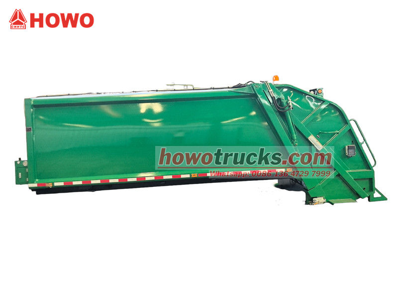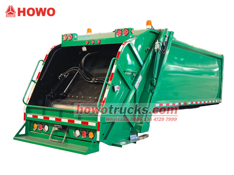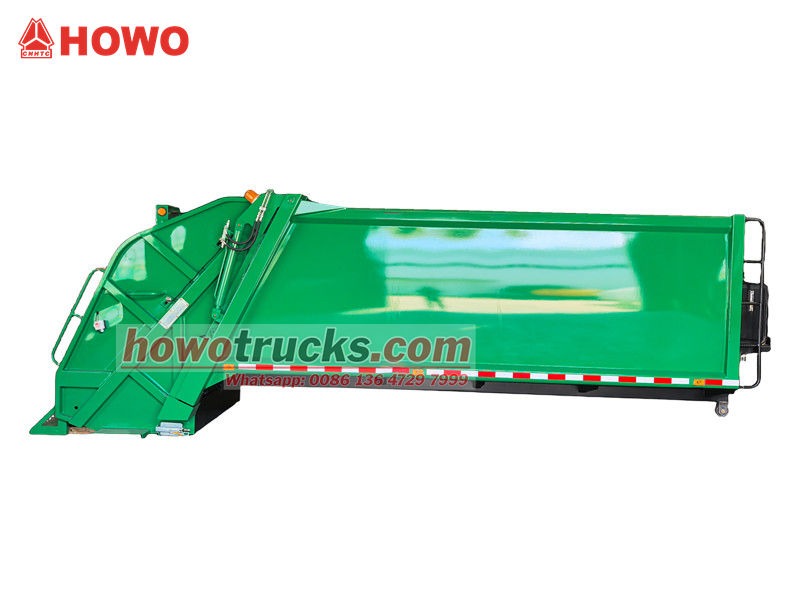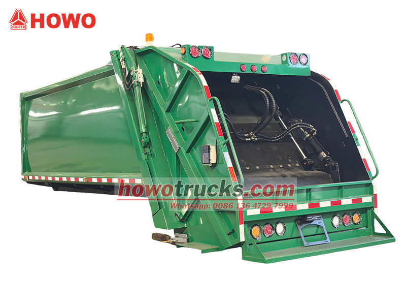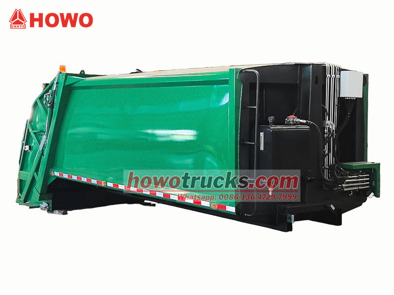 ၁၀ စင်တီမီတာရှိသော နောက်ဘက် အမှိုက်ပုံးကြိတ်စက်ကိုယ်ထည်သည် ယာဉ်၏ အဓိကလည်ပတ်မှုစနစ်ဖြစ်ပြီး အဓိကအားဖြင့် လုံအောင်ပိတ်ထားသော အမှိုက်ခန်း၊ ဖိသိပ်တွန်းစက်နှင့် တင်ဆောင်သည့်ယန္တရားတို့ ပါဝင်သည်။ ခိုင်ခံ့ပြီး တာရှည်ခံသောဖွဲ့စည်းပုံနှင့် ကောင်းမွန်သော လုံအောင်ပိတ်ထားခြင်းသည် ရေဆိုးယိုစိမ့်မှုနှင့် အနံ့ယိုစိမ့်မှုကို ကာကွယ်ပေးသည်။ လည်ပတ်နေစဉ်အတွင်း တင်ဆောင်သည့် ဟော့ပါမှ အမှိုက်ကို လက်ခံရရှိပြီးနောက်၊ ဟိုက်ဒရောလစ်စနစ်ဖြင့် မောင်းနှင်သော ခြစ်စက်သည် ၎င်းကို အခန်းထဲသို့ ခြစ်ထုတ်သည်။ ထို့နောက် ဖိသိပ်တွန်းစက်သည် ဖိအားပေးပြီး အမှိုက်ကို ဖိသိပ်ကာ ၎င်း၏ပမာဏကို လျှော့ချပြီး ဝန်တင်နိုင်စွမ်းကို မြှင့်တင်ပေးသည်။ အပေါ်ဆုံးဝန်တင်နိုင်စွမ်းမှာ ၁၂ ကုဗမီတာဖြစ်ပြီး မတူညီသောလည်ပတ်မှုလိုအပ်ချက်များကို ဖြည့်ဆည်းရန် တင်ဆောင်ခြင်းနှင့် ချခြင်းနည်းလမ်းအမျိုးမျိုးကို ပံ့ပိုးပေးသည်။