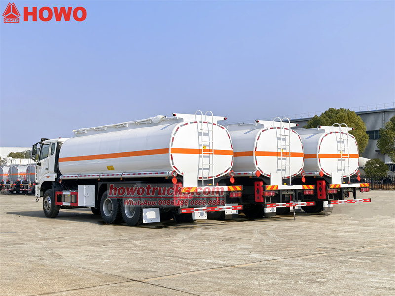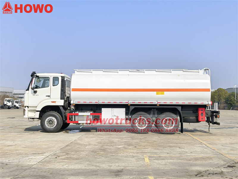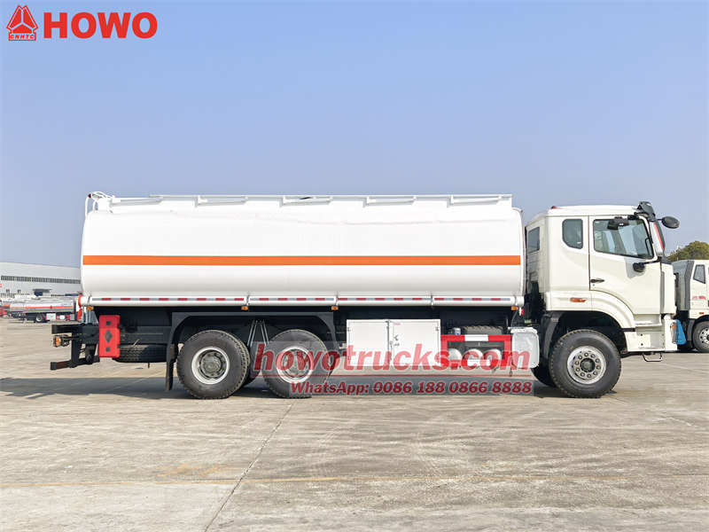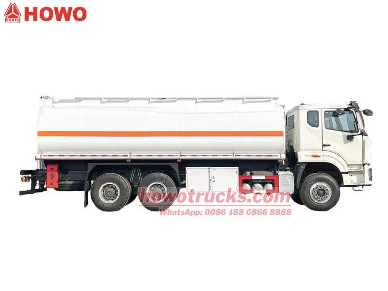 ဆီတိုင်ကီရဲ့ တကယ့်ပမာဏက25လီတာ ၁၀၀၀။ Q235 ကာဗွန်သံမဏိကို အကာအကွယ်ပစ္စည်းအဖြစ် အသုံးပြုသည်။ တိုင်ကီကိုယ်ထည်ကို အနည်းဆုံး အထူရှိသော ကာဗွန်သံမဏိဖြင့် ပြုလုပ်ထားသည်။5မီလီမီတာ။ Howo လောင်စာဆီတိုင်ကီထရပ်ကားတွင် တရုတ်နည်းပညာတပ်ဆင်ထားသည်။နာမည်ကြီးအမှတ်တံဆိပ်ပန့်များ၊ အဆို့ရှင်များနှင့် ပိုက်များအပြင် လောင်စာဆီဖြန့်ဖြူးစက်တစ်စုံ။ ဆီတိုင်ကီတွင် လွယ်ကူစွာလည်ပတ်နိုင်ရန်အတွက် လှေကားတစ်ခုတပ်ဆင်ထားပြီး လိုအပ်ချက်များအရ အခန်းများစွာအဖြစ် ဒီဇိုင်းထုတ်နိုင်သည်။