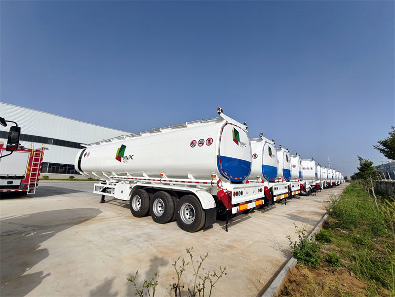 အသစ်ထွက်ရှိလာတဲ့ 3 axle 40၀၀၀ လီတာ လောင်စာဆီတိုင်ကီ နောက်တွဲယာဉ်ကို Q370R ပစ္စည်းဖြင့် ပြုလုပ်ထားပြီး ဒီဇိုင်းဖိအား 1.61MPa နှင့် အခွံနှင့် အဆုံးပြားအထူ 8.0 မီလီမီတာ ရှိပြီး နောက်ဆုံးပေါ် ထုတ်လုပ်မှုစံနှုန်းများနှင့် ကိုက်ညီပါသည်။ သယ်ယူပို့ဆောင်ရေးအတွင်း ဘေးကင်းလုံခြုံမှုရှိစေရန်အတွက် ဘေးကင်းရေးအဆို့ရှင်အမျိုးမျိုး၊ အရည်အဆင့်တိုင်းကိရိယာ၊ ဖိအားတိုင်းကိရိယာနှင့် အခြားအစိတ်အပိုင်းများ တပ်ဆင်ထားပါသည်။ ထို့အပြင်၊ BPW တံတားများ၊ JOST ဆွဲငင်တံများ၊ JOST ခြေထောက်များနှင့် အခြားဖွဲ့စည်းပုံများလည်း တပ်ဆင်ထားပြီး မတူညီသောပတ်ဝန်းကျင်နှင့် လမ်းအခြေအနေများတွင် သယ်ယူပို့ဆောင်ရေးလိုအပ်ချက်များကို ဖြည့်ဆည်းပေးနိုင်ပါသည်။ ၎င်းသည် မြင့်မားသောစွမ်းဆောင်ရည်နှင့် မြင့်မားသောဘေးကင်းရေးမိုဘိုင်းဒီဇယ်လောင်စာဆီတိုင်ကီ နောက်တွဲယာဉ်တစ်ခုဖြစ်သည်။