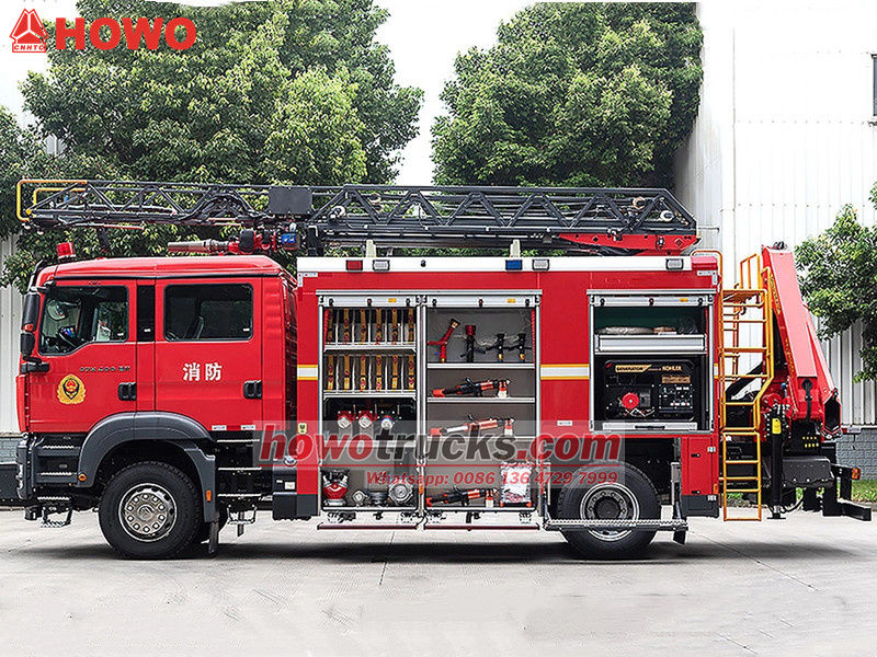 13000ထို Howo arial လှေကား မီးသတ်ကယ်ဆယ်ရေးထရပ်ကား သည် မီးသတ်နှင့် ကယ်ဆယ်ရေးလုပ်ငန်းများအတွက် အထူးဒီဇိုင်းထုတ်ထားသော အထူးပြုယာဉ်တစ်စီးဖြစ်သည်။ ၎င်းတွင် Howo TX စီးရီး ကိုယ်ထည်ပလက်ဖောင်းကို အသုံးပြုထားပြီး 400HP အင်ဂျင်နှင့် အလွန်ကောင်းမွန်သော ရွေ့လျားနိုင်မှုတို့ ပါရှိသည်။ ထရပ်ကားတွင် တောက်ပသော အနီရောင် မီးသတ်ကားဆေးသုတ်ထားပြီး ကယ်ဆယ်ရေးပစ္စည်းအမျိုးမျိုးအတွက် သိုလှောင်ရန်နေရာများစွာ တပ်ဆင်ထားသည်။