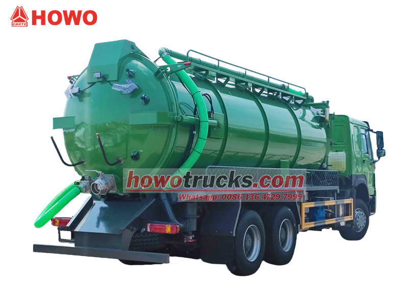 SINOTRUK HOWO 20000L မိလ္လာသန့်ရှင်းရေးထရပ်ကားသည် 6x4 လေးလံသောကိုယ်ထည်ပေါ်တွင်တည်ဆောက်ထားပြီး ကြီးမားသောစွမ်းရည်ရှိသောတံဆိပ်ခတ်တိုင်ကီနှင့် မစင်နှင့်ရွှံ့နွံများကဲ့သို့သော အရည်အညစ်အကြေးများကိုစုပ်ယူသယ်ယူပို့ဆောင်ရန်အတွက် ဖုန်စုပ်စက်စနစ်တပ်ဆင်ထားသော အထူးပြုယာဉ်တစ်စီးဖြစ်သည်။ မြင်းကောင်ရေမြင့် Weichai အင်ဂျင်နှင့် အီတလီ MORO PM110W ဖုန်စုပ်စက်ဖြင့် မောင်းနှင်သောကြောင့် ၎င်းသည် ခိုင်မာသောစုပ်ယူမှုစွမ်းဆောင်ရည်နှင့် ထူးခြားသောဒေါင်လိုက်စုပ်ယူမှုအနက်ကို ပေးစွမ်းသည်။ တိုင်ကီတွင် ဟိုက်ဒရောလစ်ကိုယ်တိုင်ချခြင်းနှင့် ဟိုက်ဒရောလစ်ဖြင့်လည်ပတ်သော နောက်ဘက်အဖုံးပါရှိသောကြောင့် အလိုအလျောက်လည်ပတ်မှုများကို မြင့်မားစွာသေချာစေသည်။ ဤလေးလံသောသန့်ရှင်းရေးပစ္စည်းကိရိယာများသည် အစွမ်းထက်သောစွမ်းဆောင်ရည်နှင့် ထူးချွန်သောထိရောက်မှုကို ပေါင်းစပ်ထားသည်။