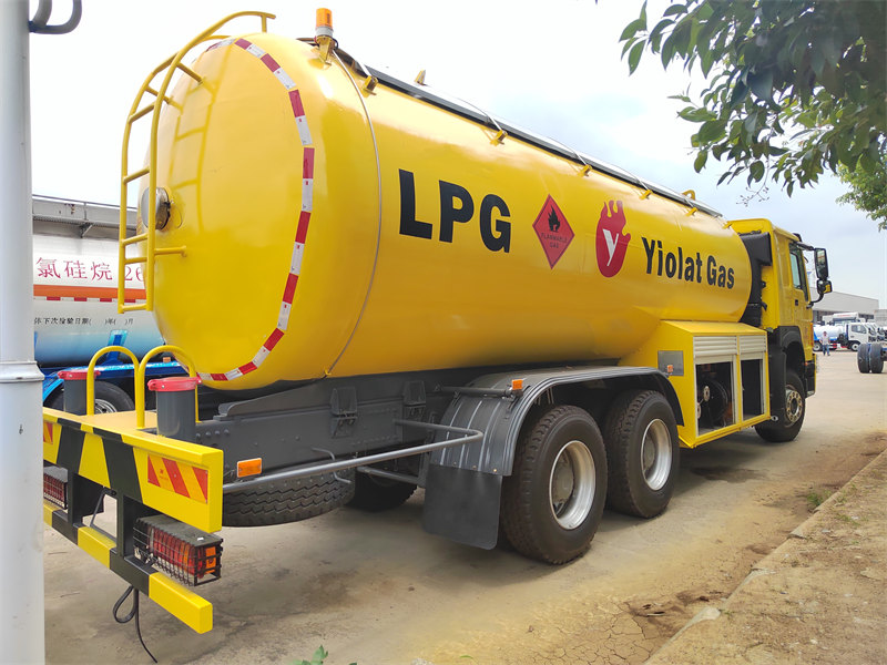 18000HOWO ၂၀,၀၀၀ လီတာ LPG လောင်စာဖြည့်ထရပ်ကားသည် အရည်ပျော်ရေနံဓာတ်ငွေ့သယ်ယူပို့ဆောင်ရေးအတွက် အထူးဒီဇိုင်းထုတ်ထားသော မြင့်မားသောဖိအားရှိသော တိုင်ကီယာဉ်တစ်ခုဖြစ်သည်။ ၎င်းကို HOWO 6x4 မောင်းနှင်မှုကိုယ်ထည်ပေါ်တွင် တည်ဆောက်ထားပြီး Euro III ထုတ်လွှတ်မှုစံနှုန်းများနှင့် ကိုက်ညီသော မြင်းကောင်ရေ ၃၄၀ အားရှိသော အင်ဂျင်ဖြင့် မောင်းနှင်သည်။ တိုင်ကီကိုယ်ထည်ကို ၁၂ မီလီမီတာထူသော အဆုံးပြားများပါရှိသော Q345R သံမဏိဖြင့် ပြုလုပ်ထားပြီး လီတာ ၂၀,၀၀၀ ဆံ့သည်။ ရေရှည်တည်တံ့ခိုင်မြဲစေရန်အတွက် သဲဖြင့်ပွတ်တိုက်ခြင်း၊ သံချေးဖယ်ရှားခြင်းနှင့် သံချေးမတက်အောင် ကုသမှုများစွာ ပြုလုပ်ထားသည်။