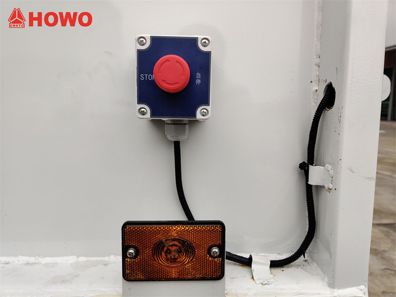 HOWO နောက်ဘက် loader နောက်ဘက်တံခါးသည် အစားအစာအကန့်နှင့် လက်ကိုင်ပါရှိပြီး အလုပ်သမားစင်နှင့် အမှိုက်သိမ်းဆည်းရန်အတွက် အဆင်ပြေပါသည်။