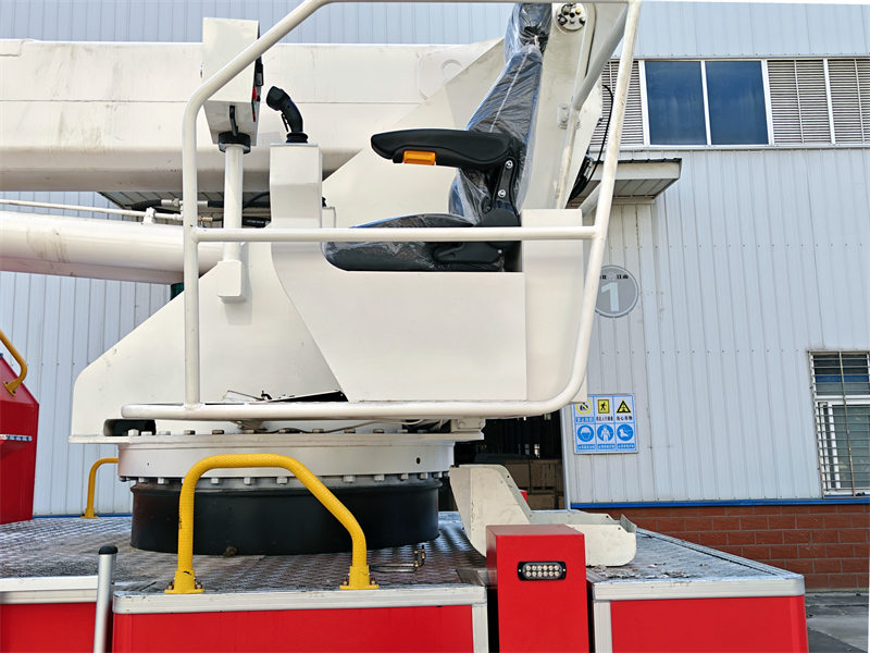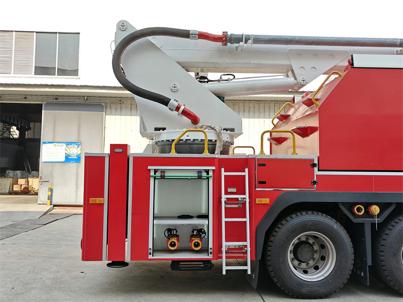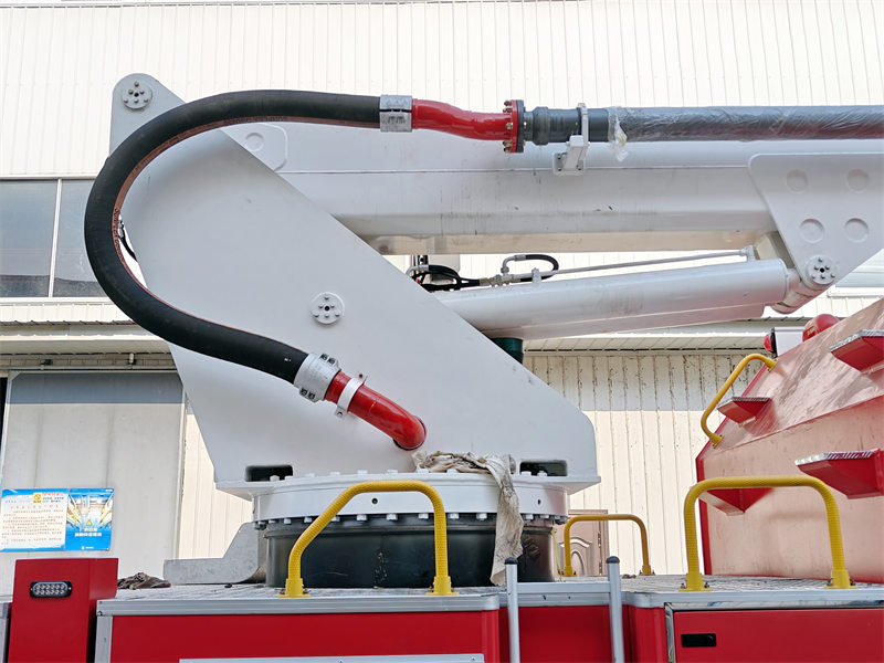 လှည့်ပတ်နေသော အစိတ်အပိုင်းတွင် အဆုံးမဲ့ ၃၆၀ ဒီဂရီ လှည့်ပတ်နိုင်သော အလယ်ဗဟိုလှည့်ပတ်သည့် အဆစ်တစ်ခု တပ်ဆင်ထားသည်။ Hမြင့်မားစွာဆန့်ထုတ်နိုင်သော တာယာပါရှိသော owo မီးသတ်ကားတွင် ရေစီးကြောင်းကြီးသော မီးသတ်စုပ်စက်နှင့် မီးသတ်အမြောက်ပါရှိသည်။ ရေတိုင်ကီနှင့် ရေလမ်းကြောင်းအားလုံးကို အရည်အသွေးမြင့် သံမဏိနှင့် မြင့်မားသောခိုင်ခံ့မှုရှိသော အလူမီနီယမ်သတ္တုစပ်ပိုက်များဖြင့် ပြုလုပ်ထားသည်။ ဟိုက်ဒရောလစ်စနစ်တွင် မြင့်မားသောစွမ်းဆောင်ရည်ရှိသော စုပ်စက်နှင့် လျှပ်စစ်-အရည် အချိုးကျထိန်းချုပ်မှုမုဒ်ကို အသုံးပြုထားသည်။ လျှပ်စစ်စနစ်တွင် ရင့်ကျက်ပြီး ယုံကြည်စိတ်ချရသော ထိန်းချုပ်ကိရိယာ CAN ဘတ်စ်ကားဆက်သွယ်ရေးနည်းပညာနှင့် ဘက်စုံဗဟိုပြုလည်ပတ်မှုကို အသုံးပြုထားသည်။