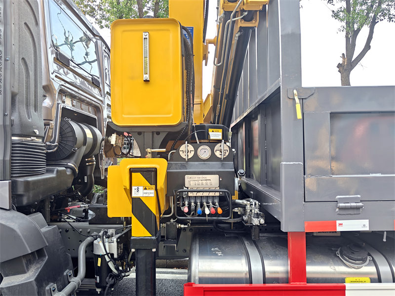 အပေါ်ပိုင်း ခန္ဓာကိုယ်၏ ဟိုဝို ကုန်တင် ထရပ်ကား တပ်ဆင်ထားသည် ခေါက်ခြင်းအများဆုံး မြှင့်တင်နိုင်စွမ်းရှိသော boom crane ၆ တန်နှင့် အပြည့်အဝ 52၀° လည်ပတ်သည်။ ကရိန်းအလေးချိန်သည် ၁၇၀၀ကီလိုဂရမ်နှင့် တပ်ဆင်မည့်နေရာသည် 7၅၀ မီလီမီတာ။ ကွဲပြားသော လိုအပ်ချက်များရှိသူများအတွက် လွယ်ကူချောမွေ့စေရန်အတွက် ထိန်းချုပ်ကိရိယာကို အင်္ဂလိပ် သို့မဟုတ် အခြားဘာသာစကားများဖြင့် ရွေးချယ်နိုင်ပါသည်။