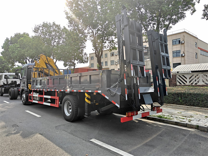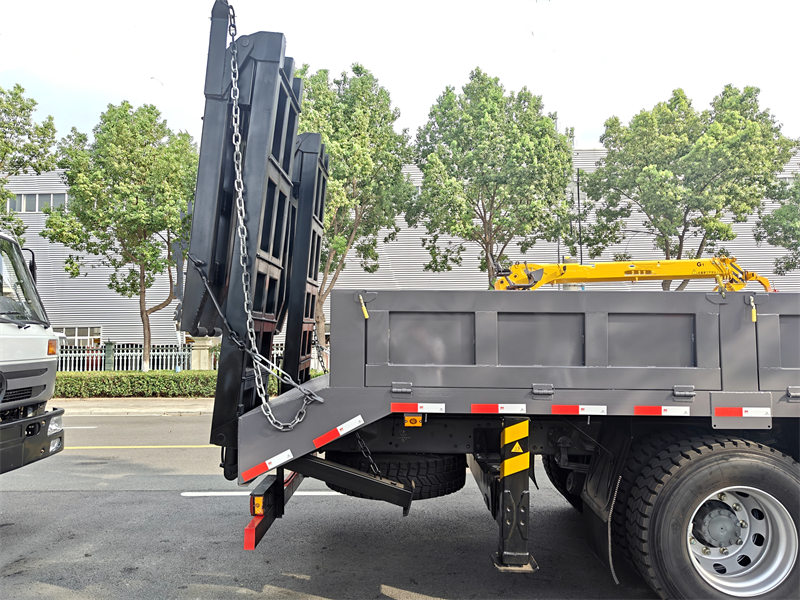 ♦ ထို 3-section boom ခေါက်သိမ်းနိုင်သော ဖွဲ့စည်းပုံကို ခေါက်၍ cab နောက်တွင် ထားနိုင်ပြီး ကုန်တင်သေတ္တာကို flatbed ဖြင့် ဖြည့်စွက်နိုင်သည်။.