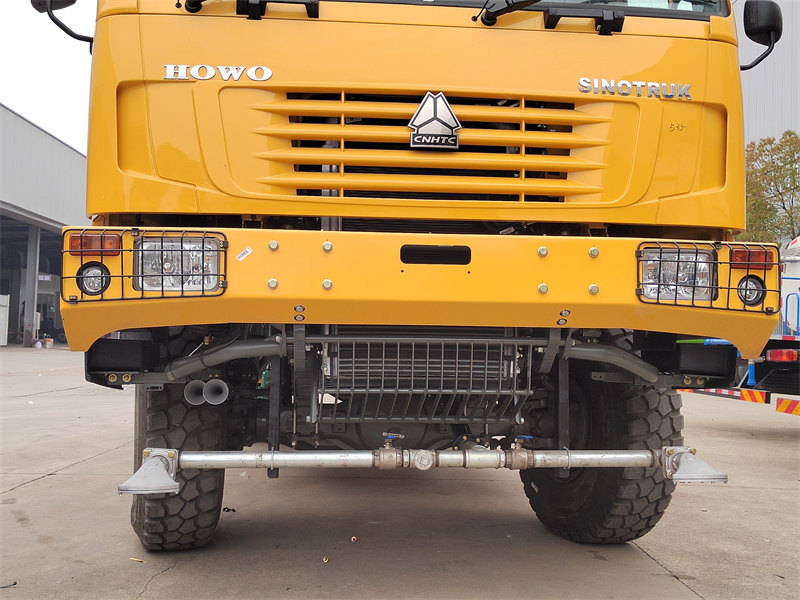 13000HOWO 4×4 ရေတင်ကားသည် HOWO 4×4 all-wheel-drive off-road chassis ပေါ်တွင် တည်ဆောက်ထားသော မြင့်မားသောစွမ်းဆောင်ရည်၊ ဘက်စုံသုံး ဖုန်မှုန့်နှိမ်နင်းရေးယာဉ်တစ်စီးဖြစ်ပြီး ထူးခြားသော off-road စွမ်းရည်များရှိသည်။ ၎င်းတွင် STR cast front steering drive axle နှင့် ST16 rear drive axle နှင့်အတူ ကျယ်ပြန့်သော wheelbase ဒီဇိုင်း (2022/1830mm) တပ်ဆင်ထားသောကြောင့် ရှုပ်ထွေးသော မြေပြင်များတွင် အလွန်ကောင်းမွန်သော တည်ငြိမ်မှုကို သေချာစေသည်။ 300-horsepower WD615.97C အင်ဂျင်နှင့် တွဲဖက်ထားသော 4×4 drive စနစ်သည် 1,340N·m ၏ ကြီးမားသော torque ကို ပေးစွမ်းနိုင်သောကြောင့် တောင်တန်းများနှင့် သဲကန္တာရများကဲ့သို့သော အစွန်းရောက်ပတ်ဝန်းကျင်များကို အလွယ်တကူ ကိုင်တွယ်ဖြေရှင်းနိုင်သည်။