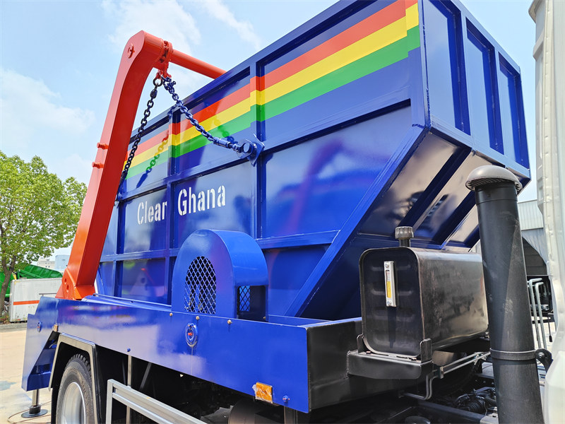 Howo 6x4 roll on roll off အမှိုက်သိမ်းကားသည် ခိုင်ခံ့သောပလက်ဖောင်းနှင့် အထူ ၈ မီလီမီတာတပ်ဆင်ထားပြီး လေးလံသောကွန်တိန်နာပုံးများကို မတင်နိုင်၊ ပြုတ်ကျနိုင်သည့်လုပ်ငန်းစဉ်အတွက် ခိုင်ခံ့သောလွှဲလက်မောင်းများနှင့် ကိုက်ညီပါသည်။ skip deck ပလက်ဖောင်း၏နောက်ဘက်တွင် hydraulic hook တပ်ဆင်ထားပြီး ကွန်တိန်နာပုံးကို သော့ခတ်ပြီး လော့ခ်ဖွင့်ရန်အသုံးပြုနိုင်ပြီး ကွန်တိန်နာပုံးကို မြေပြင်ပေါ်တွင်ချထားနိုင်သည့် လုပ်ဆောင်ချက်ကို သိရှိနိုင်ပြီး သတ်မှတ်ထားသောနေရာတွင် အမှိုက်များစုဆောင်းနိုင်သည်။ အမှိုက်သိမ်းစခန်းတွင်ရှိသည့်အခါ အမှိုက်စွန့်ပစ်ရန်အတွက်လည်း အသုံးပြုနိုင်သည်။ Manual hydraulic control valve နှင့် Electric control box နှစ်မျိုးလုံးကို အသုံးပြုမှုကို ပိုမိုထိရောက်စွာနှင့် လွယ်ကူစေရန် တပ်ဆင်ထားသည်။