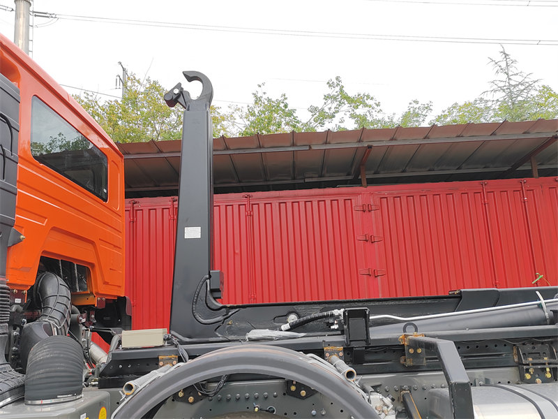 HW76 cabin, 6×6, 25 ton hook arm is optionalHOWO ၂၀ တန် ချိတ်ဆွဲအမှိုက်ကားသည် အမှိုက်ကွန်တိန်နာများကို လွတ်လပ်စွာ အလိုအလျောက် တင်ခြင်း၊ ချခြင်းနှင့် ကိုယ်တိုင်စွန့်ပစ်ခြင်းတို့ကို ပြုလုပ်နိုင်သည့် hydraulic hook-arm စနစ်တပ်ဆင်ထားသော လေးလံသောထရပ်ကားကိုယ်ထည်ပေါ်တွင် အခြေခံထားသော သန့်ရှင်းရေးယာဉ်ကြီးတစ်စီးဖြစ်သည်။ HOWO NX 8×4 ကိုယ်ထည်ပေါ်တွင် တည်ဆောက်ထားပြီး Weichai 400 မြင်းကောင်ရေအင်ဂျင်ဖြင့် မောင်းနှင်ထားသော ၎င်းတွင် စုစုပေါင်းအလေးချိန် ၃၁,၀၀၀ ကီလိုဂရမ်ရှိပြီး ၁၅-၂၀ ကုဗမီတာ အမှိုက်ကွန်တိန်နာများကို ကိုင်တွယ်ရန် ဒီဇိုင်းထုတ်ထားသည်။ hydraulic ယန္တရားများမှတစ်ဆင့် ထိန်းချုပ်ထားသော 20 တန် ချိတ်ဆွဲစနစ်သည် စက္ကန့် ၄၅ အောက်အတွင်း လည်ပတ်မှုစက်ဝန်းတစ်ခုတည်းကို ပြီးမြောက်စေပြီး အမှိုက်လွှဲပြောင်းခြင်းနှင့် ကွန်တိန်နာများစွာပါဝင်သော စက်ဝန်းသယ်ယူပို့ဆောင်ရေးအခြေအနေများတွင် သိသာထင်ရှားသော စွမ်းဆောင်ရည်အားသာချက်များကို ပြသနေသည်။
