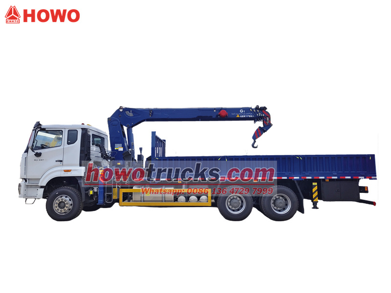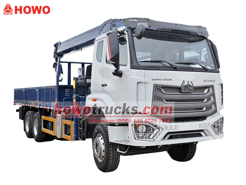 HOWO NX လေးလံသောကုန်တင်ထရပ်ကားတွင် တန် ၂၀ ဝန်တင်ကရိန်းတပ်ဆင်ထားသည်။