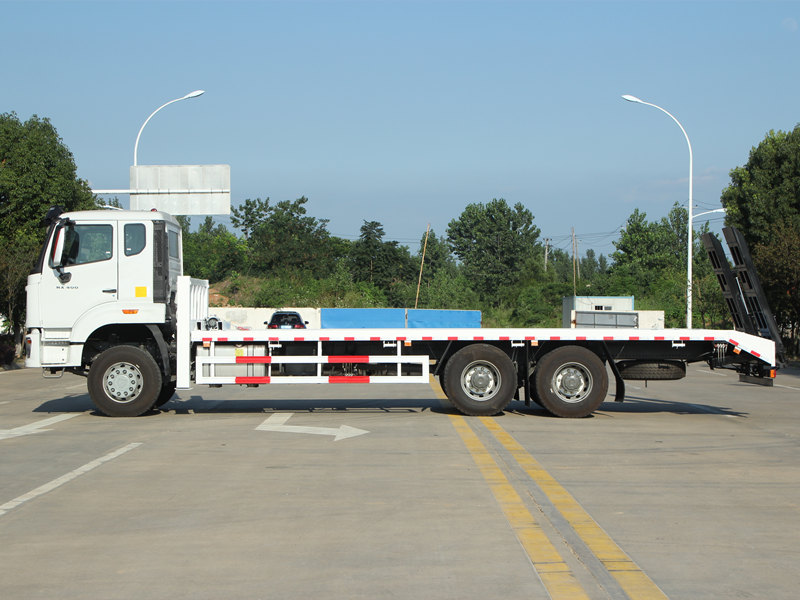HOWO NX Self Loader Truck သည် ဆောက်လုပ်ရေးယန္တရားကြီးများကို သယ်ယူပို့ဆောင်ရန်အတွက် အထူးဒီဇိုင်းထုတ်ထားသော ပရော်ဖက်ရှင်နယ်ယာဉ်တစ်စီးဖြစ်သည်။ HOWO 6×4 မောင်းနှင်မှုကိုယ်ထည်ပေါ်တွင် တည်ဆောက်ထားပြီး 400HP Weichai မြင့်မားသောဖိအား common rail အင်ဂျင်ဖြင့် မောင်းနှင်သောကြောင့် မြင့်မားသောစွမ်းဆောင်ရည်နှင့် ပတ်ဝန်းကျင်နှင့် လိုက်လျောညီထွေမှုရှိသော ခိုင်မာသောစွမ်းဆောင်ရည်ကို ပေးစွမ်းသည်။ ယာဉ်တွင် 8600×2500 mm ချော်မကျစေသော flatbed၊ 20-ton ရှေ့ lifting hydraulic outriggers နှစ်ခုနှင့် 4-ton hydraulic winch တပ်ဆင်ထားသောကြောင့် လေးလံသောမြေတူးစက်များနှင့် အခြားပစ္စည်းများ၏ သယ်ယူပို့ဆောင်ရေးနှင့် လုပ်ငန်းခွင်လည်ပတ်မှုလိုအပ်ချက်များကို အပြည့်အဝဖြည့်ဆည်းပေးသည့် ဘေးကင်းပြီးယုံကြည်စိတ်ချရသော loading and unloading စနစ်တစ်ခုကို ဖန်တီးပေးသည်။