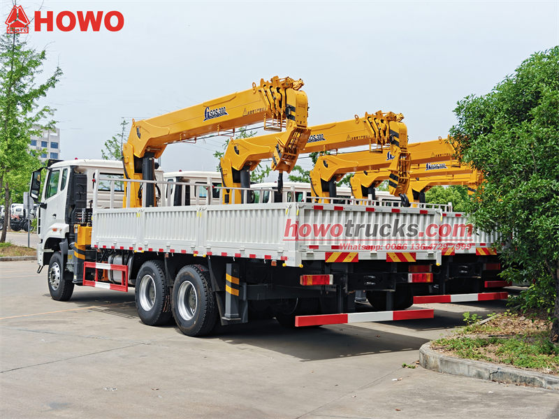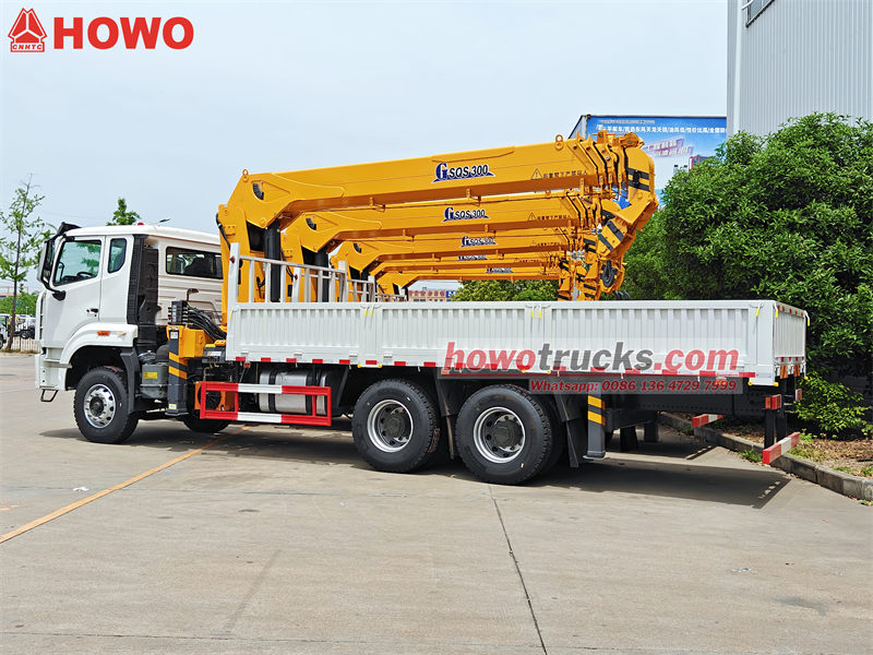 ♦ Howo အကြီးစား ၂၀ တန် ကရိန်းထရပ်ကား6x4 မောင်းနှင်မှုပုံစံ၊ နောက်ဘက်နှစ်ထပ်ဝင်ရိုးမောင်းနှင်မှု + ရှေ့ဝင်ရိုးစတီယာရင် ပါရှိသည်.