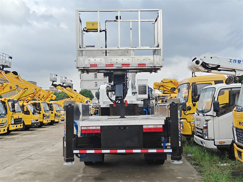 HOWO ၂၂ မီတာ ဝေဟင်ပလက်ဖောင်းထရပ်ကားသည် သာလွန်ကောင်းမွန်သော နည်းပညာဆိုင်ရာစွမ်းဆောင်ရည်နှင့် ဘေးကင်းရေးဒီဇိုင်းကို ပေါင်းစပ်ထားသော အထူးပြုအင်ဂျင်နီယာထရပ်ကားတစ်ခုဖြစ်သည်။ Howo all-drive chassis ပေါ်တွင်တည်ဆောက်ထားသော ထရပ်ကားတွင် အများဆုံးထွက်ရှိမှု 154 HP နှင့် ယာဉ်အလေးချိန် 10,000 kg ရှိသော ISF3.8S3154 အင်ဂျင်တပ်ဆင်ထားပြီး ပြောင်းလွယ်ပြင်လွယ်ရှိပြီး စွမ်းဆောင်ရည်မြင့်မားသော ကိုင်တွယ်မှုကို ပေးစွမ်းသည်။ Howo အပေါ့စား လေကြောင်းပလက်ဖောင်းထရပ်ကားသည် အများဆုံး အလုပ်လုပ်နိုင်သော အမြင့် ၂၂ မီတာနှင့် အများဆုံး လည်ပတ်နိုင်သော အချင်းဝက် ၁၂ မီတာရှိသည်။ ၎င်းသည် တည်ငြိမ်မှုကို သေချာစေရန် hydraulic static balancing system ကိုအသုံးပြုသည်။ နှစ်လမ်းသွား hydraulic locking mechanism ပါရှိသော ၎င်း၏ထူးခြားသော H-shaped hydraulic outrigger ဒီဇိုင်းသည် လည်ပတ်နေစဉ် တည်ငြိမ်မှုကို သေချာစေသည်။ Howo အပေါ့စား manual နှင့် wireless remote control system နှစ်မျိုးလည်း ပါရှိသည်။ ပလက်ဖောင်းတွင် 200 kg ၏ ဝန်တင်နိုင်စွမ်း၊ 360° hydraulic လည်ပတ်မှုနှင့် အလိုအလျောက် အပြင်ဘက်ထိန်းချုပ်မှု၊ အရေးပေါ်ရပ်တန့်မှုနှင့် ယိုစိမ့်မှုကာကွယ်ရေးကိရိယာအပါအဝင် built-in ဘေးကင်းရေးအင်္ဂါရပ်များစွာရှိသည်။
